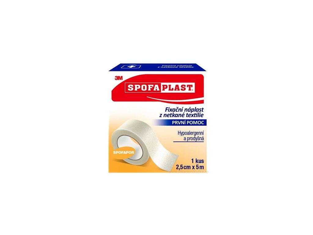 Cévková náplast, fixační náplast z netkané textilie bílé barvy, šetrná k pokožce, ideální pro lidi s jemnou pokožkou. Dlouhá 5m se šířkou 2,5cm.