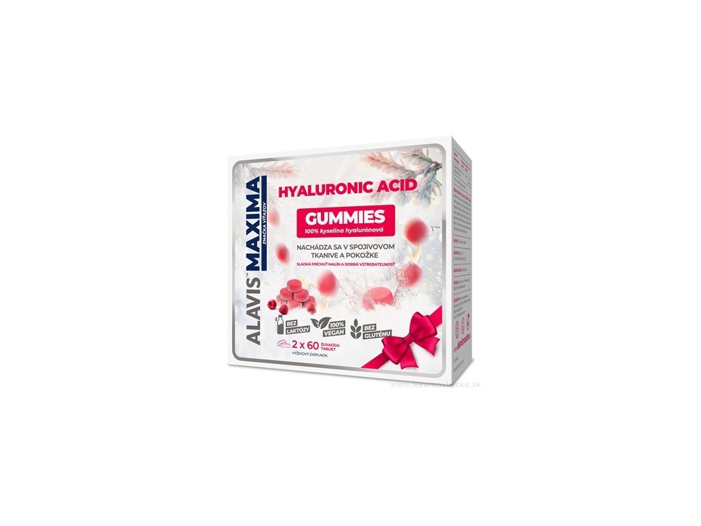ALAVIS™ MAXIMA HYALURONIC ACID - GUMMIES je úzce profilovaný doplněk stravy obsahující vysoce kvalitní hyaluronát sodný – kyselinu hyaluronovou. Hyaluronát sodný (kyselina hyaluronová – HA) je látka, která se přirozeně nachází a vytváří v lidském těle. Je součástí glykosaminoglykanů (GAG) nacházejících se například na povrchu výstelky močového traktu, v mezibuněčné hmotě pojivové tkáně, synoviální tekutině, v očích, chrupavce, kůži a sliznicích. V organismu plní několik funkcí. Je schopna zadržovat molekuly vody, elektrolyty, živné látky, ale i jiné biochemické látky a vytvářet s nimi komplex.