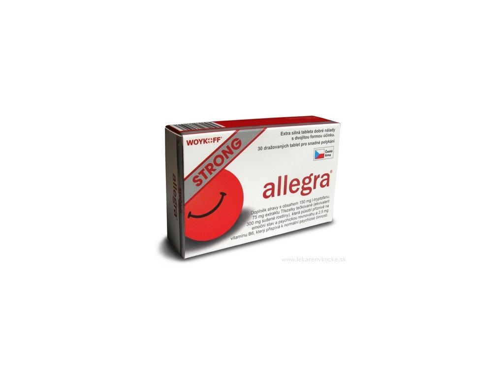 allegra&STRONG - doplněk stravy s obsahem 50 mg l-tryptofanu, 75 mg extraktu Třezalky tečkované (ekvivalent 300 mg sušené rostliny), 2,5 mg vitaminu B6.