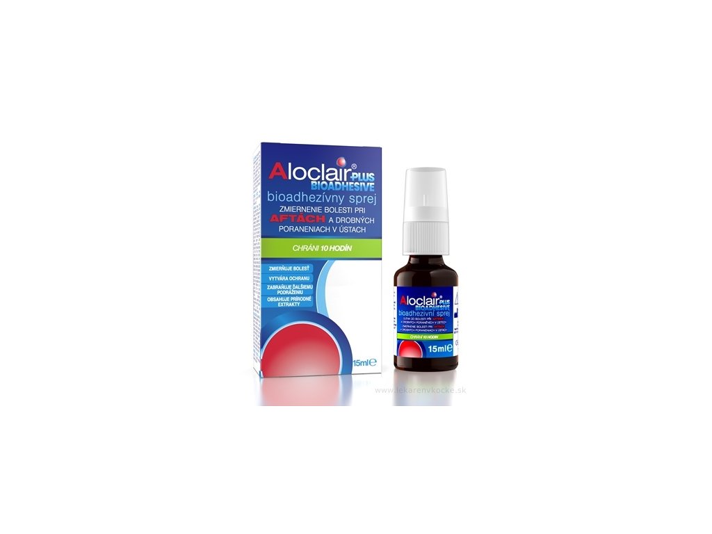 Aloclair® Plus Bioadhesive bioadhezivní sprej působí mechanicky (vytváří bariéru) a je určen ke zvládnutí příznaků způsobených aftami, ústní stomatitidou, vřídky v ústech, podrážděním ústní dutiny a drobnými poraněními ústní dutiny způsobenými zubními strojky a pro. Je vhodný zejména pro těžko přístupné afty a léze. Jeho působení vede k úlevě od bolesti tím, že přilne k povrchu ústní sliznice, uklidní ústní léze, omezí bolest a nepohodlí. Sprej obsahuje složky s vysokou filmotvornou schopností a vysokou mukoadhezí: vytváří ochranný film jako bariérový efekt (nebo štít), který trvá více než 10 hodin. Chrání před vnějšími faktory, čímž minimalizuje riziko dalšího podráždění. Sprej přilne k aftám i lézím, čímž omezuje kontakt s vnějšími vlivy, jako jsou chemické, mechanické a tepelné podněty. Díky svému ochrannému působení pomáhá při zvládání fyziologických procesů hojení.