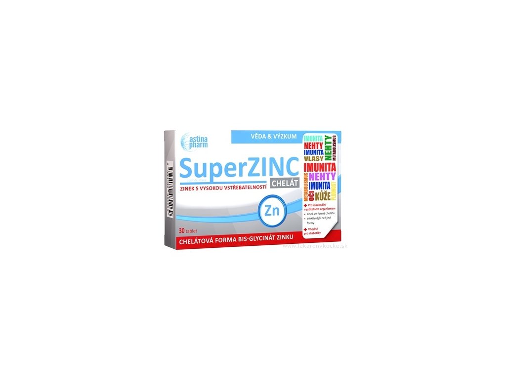 Doplněk stravy ve formě tablet obsahuje zinek s vysokou vstřebatelností.