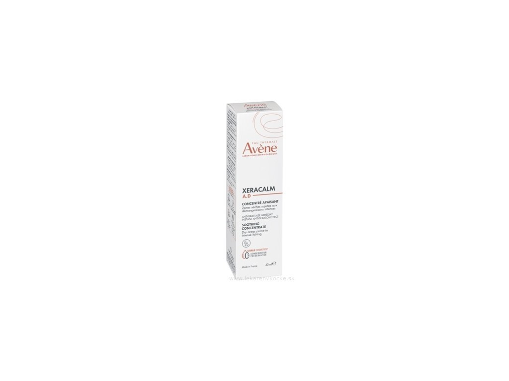 XeraCalm A.D Zklidňující koncentrovaná péče okamžitě ulevuje suchým oblastem se sklonem k intenzivnímu svědění a atopickému ekzému. Jedná se o SOS péči s okamžitým účinkem proti škrábání díky účinné kombinaci aktivních látek: I-modulia®, první postbiotická aktivní látka získaná z termální vody Avene, která zmírňuje svědění, stimuluje obranyschopnost pokožky a bojuje proti podráždění, vysoce koncentrovaný ochranný a obnovující komplex, který zmírňuje závažné stavy suchosti a zklidňuje, zjemňuje a působí proti podráždění.