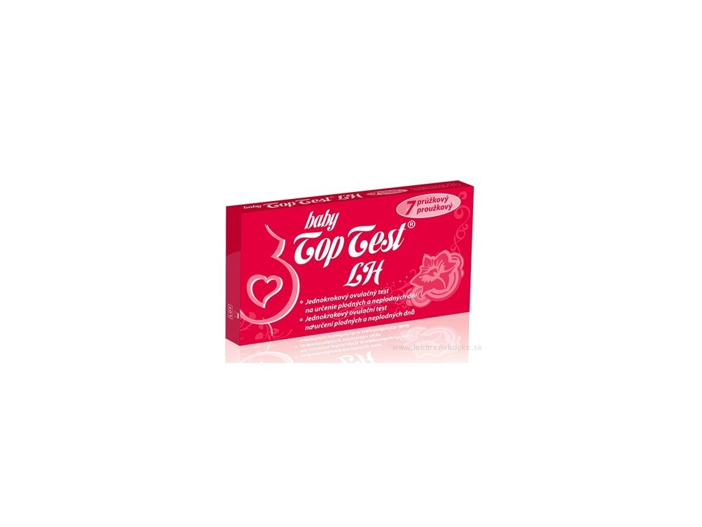 Baby Top Test® jednokrokový ovulační test pro určení plodných a neplodných dnů. Používá se k determinaci přítomnosti lidského hormonu (LH) ve vzorku moči. Obsah balení 7 testů ve formě proužku.