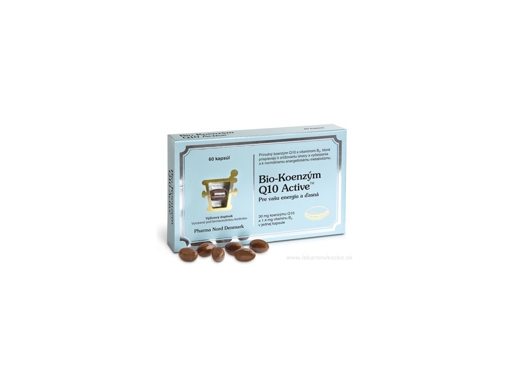 Bio* - Koenzym Q10 Active. Přípravek obsahuje 30 mg koenzymu Q10 a 1,4 mg vitaminu B2 v 1 kapsli.