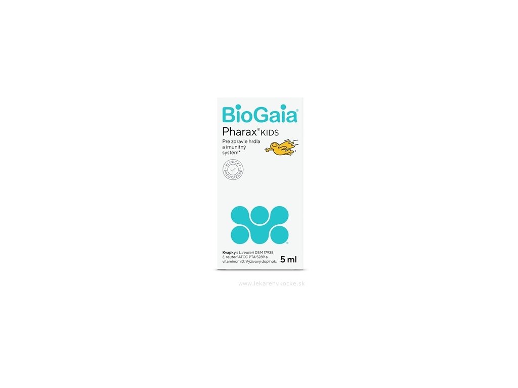 BioGaia Pharax KIDS je inovativní doplněk stravy ve formě kapek, který podporuje přirozenou rovnováhu mikroflóry ústní dutiny a hrdla u dětí již od 6 měsíců. Obsahuje kombinaci dvou klinicky testovaných a patentovaných kmenů bakterií mléčného kvašení Limosilactobacillus reuteri (DSM 17938 a ATCC PTA 5289) doplněnou o vitamin D3, který přispívá ke správné funkci imunitního systému.