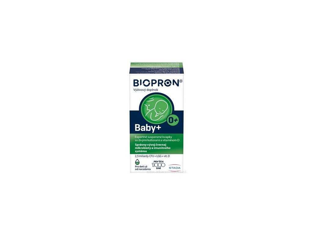 BIOPRON BABY+ je unikátní kombinace dvou kmenů živých organismů, které žijí ve střevech a vitamínu D3. Suplementace živými kulturami je doporučena na podporu obnovy rovnováhy střevní mikroflóry. Narušená rovnováha přirozené mikroflóry může být příčinou průjmu, křečí či nadýmání. Vitamin D je potřebný pro normální růst a vývoj kostí a přispívá ke správné funkci imunitního systému u dětí.