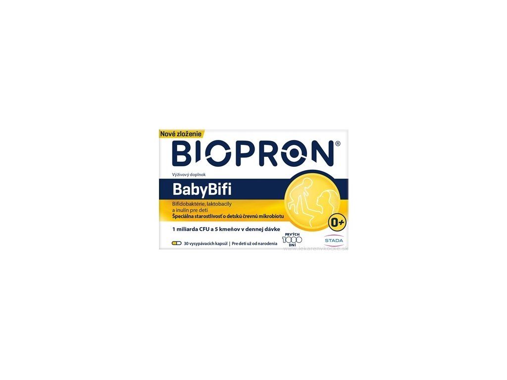 BIOPRON BabyBifi je kvalitní výživový doplněk navržený speciálně pro děti již od narození. Obsahuje komplex živých bakterií s vysokým podílem bifidobakterií, které jsou přirozenou součástí střevní mikroflóry dětí. Složení je doplněno o laktobacily a prebiotickou vlákninu, čímž je ideálně přizpůsobeno potřebám dětského organismu.