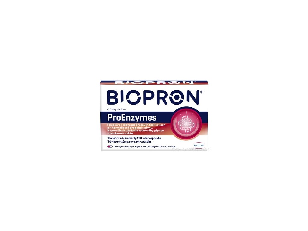 BIOPRON ProEnzymes představuje komplexní řešení pro vaše trávení, které díky unikátní kombinaci enzymů, probiotik a bylinných extraktů podporuje zdraví střev a pohodlí při trávení.