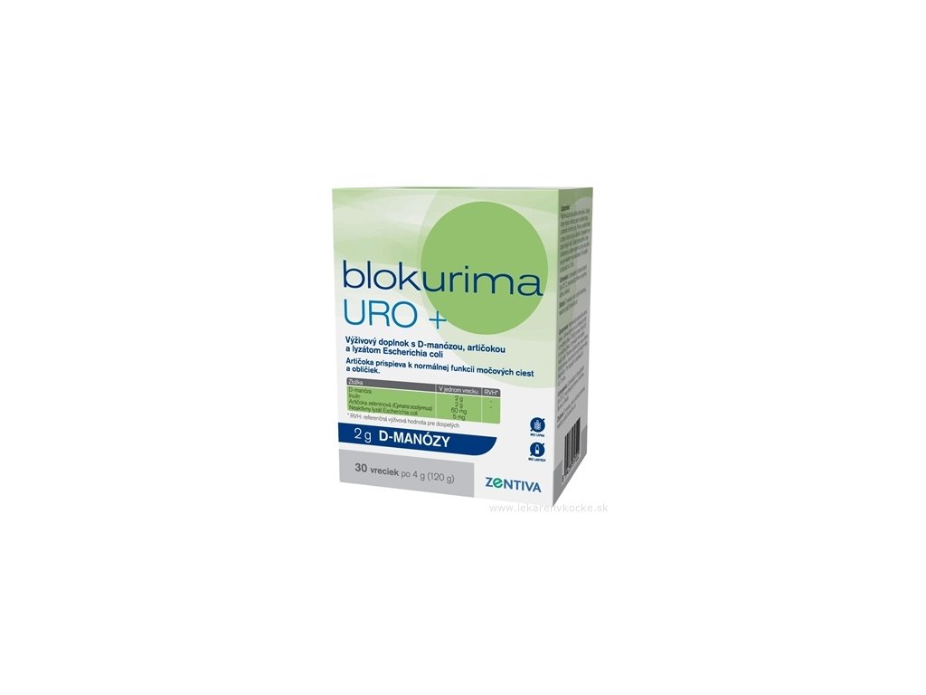 Blokurima URO+ je doplněk stravy, který zahrnuje 2g D-manosy a 2g inulinu v každém sáčku, doplněný o 60mg extraktu z artyčoky a 5mg lyzátu UPEC (uropatogenní E.coli). Tato speciální směs složek byla vyvinuta s cílem podpořit zdraví močových cest a zajistit jejich správné fungování.