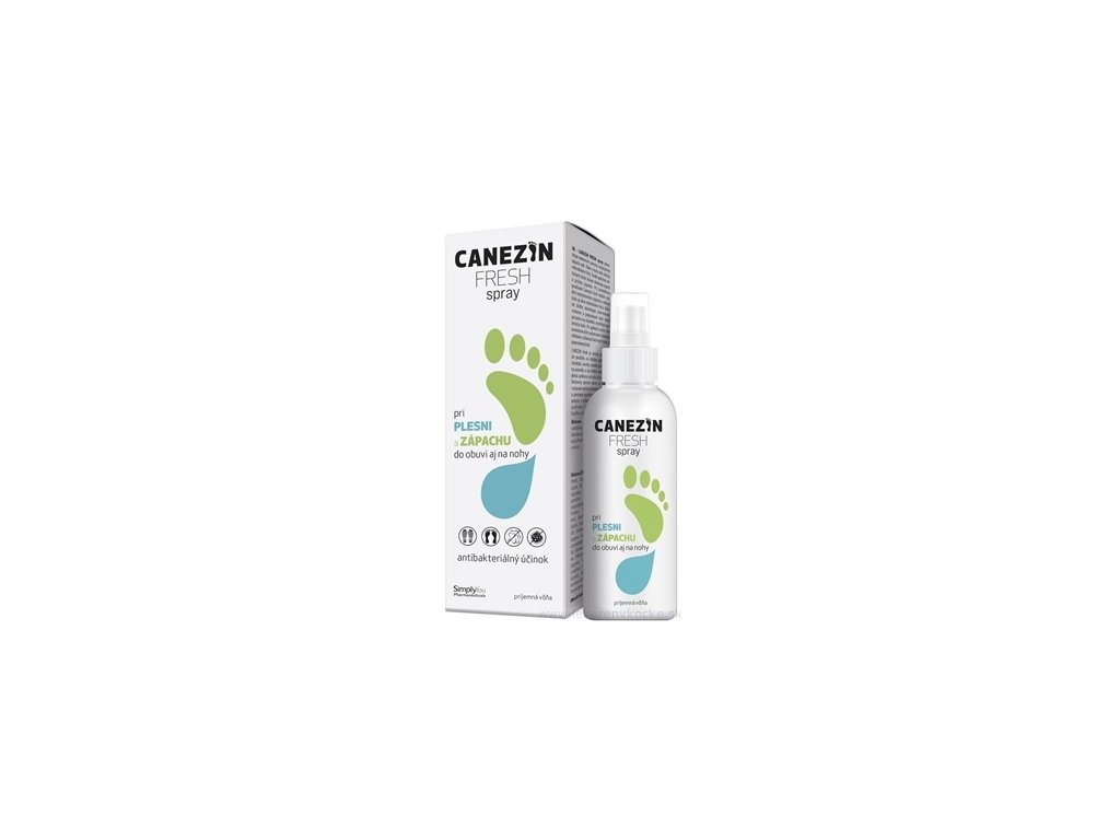 CANEZIN FRESH spray Bylinné složky omezují zarudnutí, svědění a popraskání kůže mezi prsty a na chodidle, urychlují regeneraci kůže. Je určen k zevnímu použití, lokální aplikaci na chodidla, nehty, mezi prsty nohou, na ponožky a stélku obuvi.