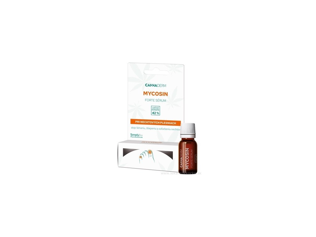 Mycosin FORTE sérum je určen pro speciální péči o nehty se sklonem k plísním (mykózám). Účinné složení pečuje o nehty postižené plísní, vytváří nepříznivé prostředí pro množení nehtových plísní, čistí nehty, zlepšuje vzhled a pevnost nehtů, zmírňuje lámání, nevzhledné zabarvení a třepení nehtů.