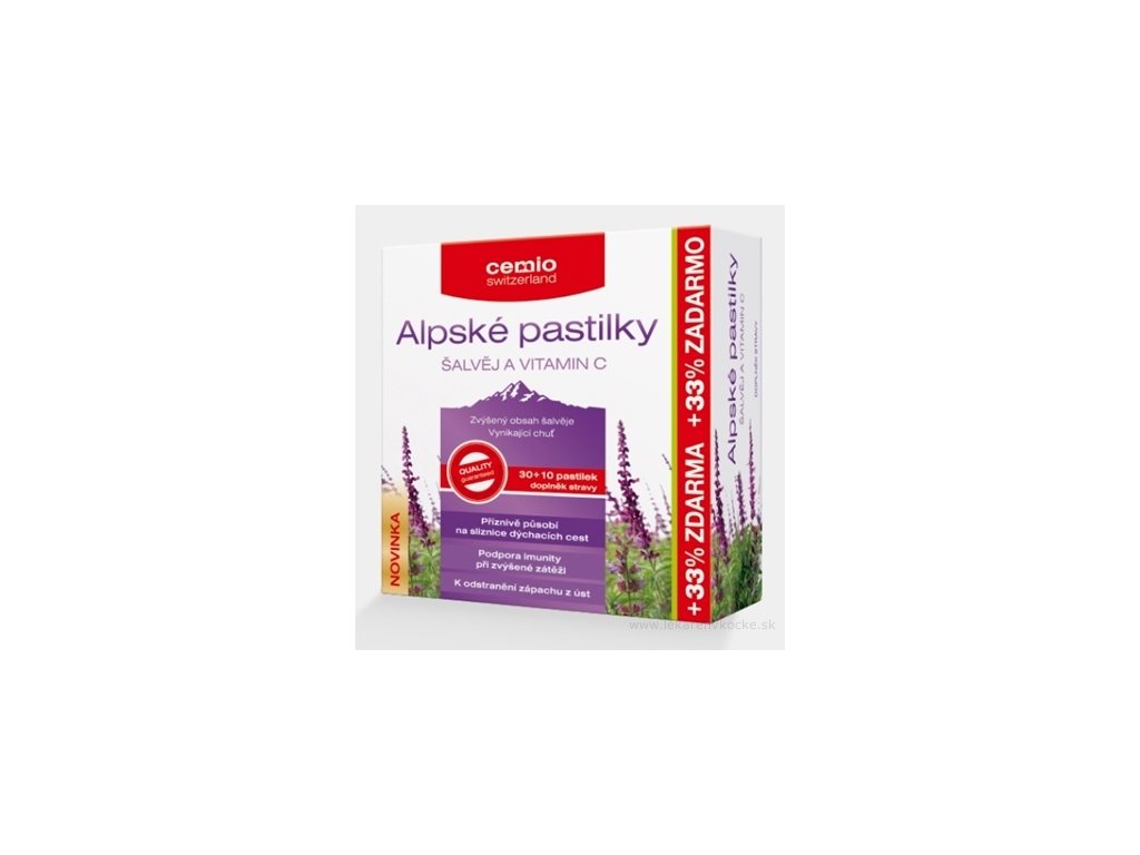 Cemio Alpské pastilky ŠALVÍ A VITAMIN C pastilky 30+10 (33% zdarma) (40 ks)