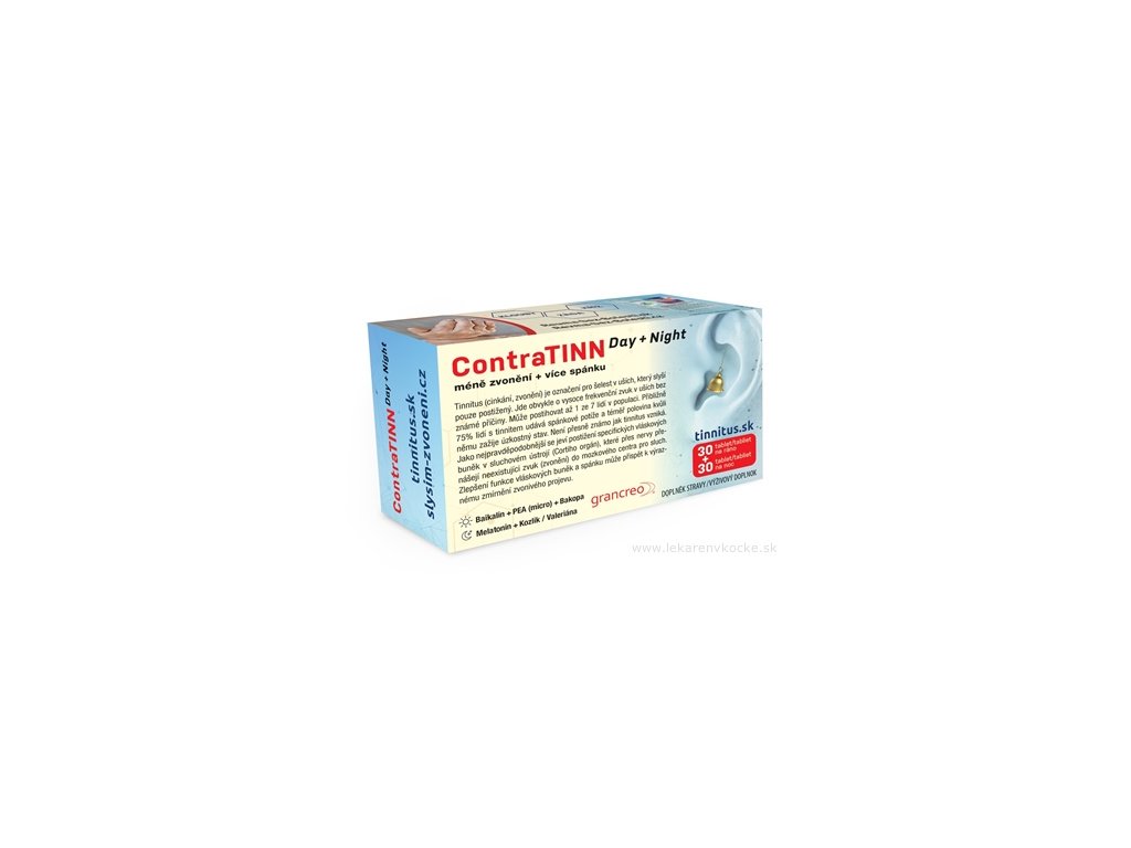 Doplněk stravy vhodný pro lidi s projevy tinitu (zvonění v uších), s duálním užíváním, kde se ráno užívá tableta s jiným složením než tableta určená k užívání před spaním. Denní tableta s prodlouženým působením obsahuje kombinaci baikalinu, Bakopy a palmitoyletanolamidu, zaměřenou na podporu výživy specifických vláskových buněk v Cortiho orgánu vnitřního ucha. Večerní tableta s dvoufázovým uvolňováním obsahuje kombinaci kozlíku a melatoninu, pro úpravu spánku.
