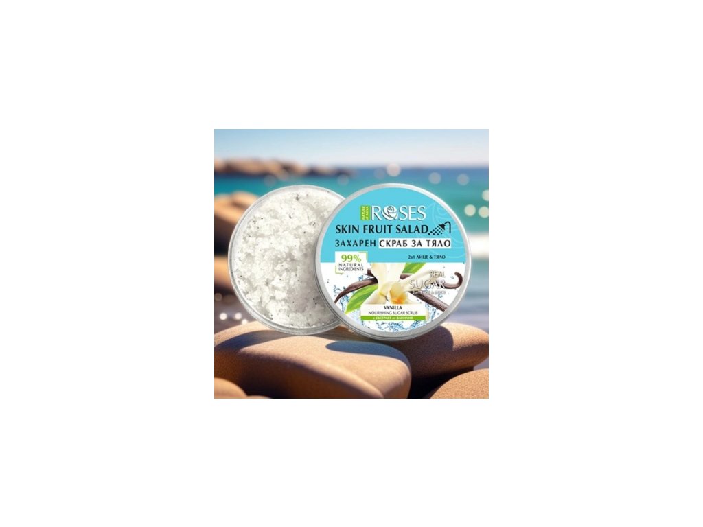 Objevte výjimečný zážitek z čištění a exfoliace s produktem NATURE OF AGIVA FRUIT SALAD 2v1 Cukrový peeling s vanilkou, který spojuje účinné čištění a jemný peeling v jednom kroku. Tento přírodní produkt obsahuje pravý cukr a 100% přírodní exfoliační částice, které důkladně, ale šetrně odstraňují odumřelé buňky, zlepšují strukturu pokožky a zanechávají ji jemnou, hladkou a rozjasněnou.