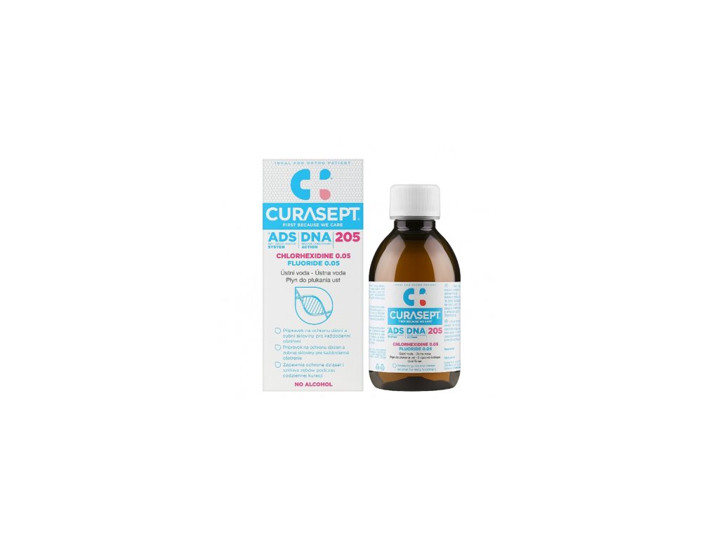 CURASEPT ADS 205, ústní voda Curasept, chlorhexidin ústní voda, fluorid ústní voda, péče o ústní dutinu, ústní hygiena, ústní voda na dásně, ústní voda po zákrocích, ústní voda při implantátech, ústní voda bez předpisu