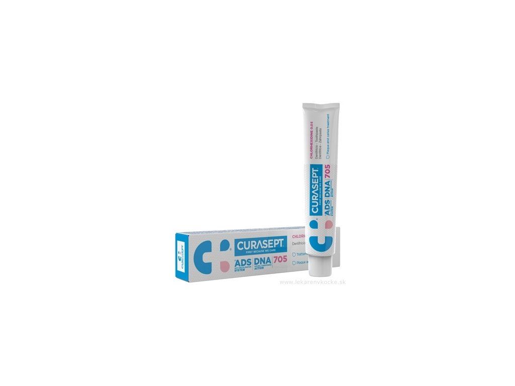 CURASEPT ADS DNA 705 je špičková zubní pasta s obsahem chlorhexidinu 0,05 %, určená pro dlouhodobou ochranu ústní dutiny a prevenci problémů s dásněmi. Díky svému šetrnému, ale účinnému složení je ideální pro každodenní použití, a to zejména pro osoby se zvýšeným rizikem vzniku zubního kazu, zánětem dásní nebo s komplikacemi při mechanickém čištění zubů – například při nošení zubních protéz, strojků či implantátů.