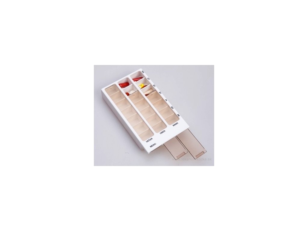 Dávkovače na léky slouží k přehlednému a spolehlivému dávkování léků a potravinových doplňků doma i na cestách. Jsou označeny jednoduchými jmenovkami a symboly zobrazujícími denní dobu. Jednotlivé typy dávkovačů se liší velikostí, tvarem, počtem částí v jednom dni a barevným provedením. Některé dávkovače mají také hmatově znakové odlišení pro zrakově postižené.
