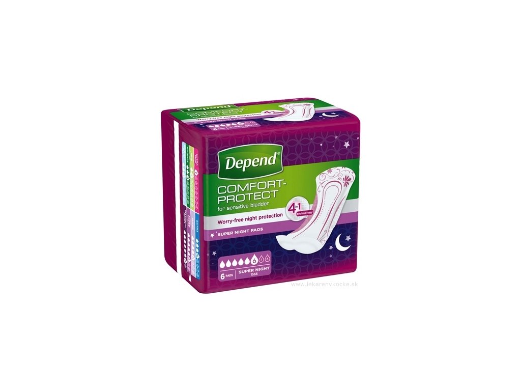 DEPEND SUPER NIGHT (SUPER PLUS) inkontinenční vložky pro ženy, 12x40 cm, savost 808 ml, 6 ks