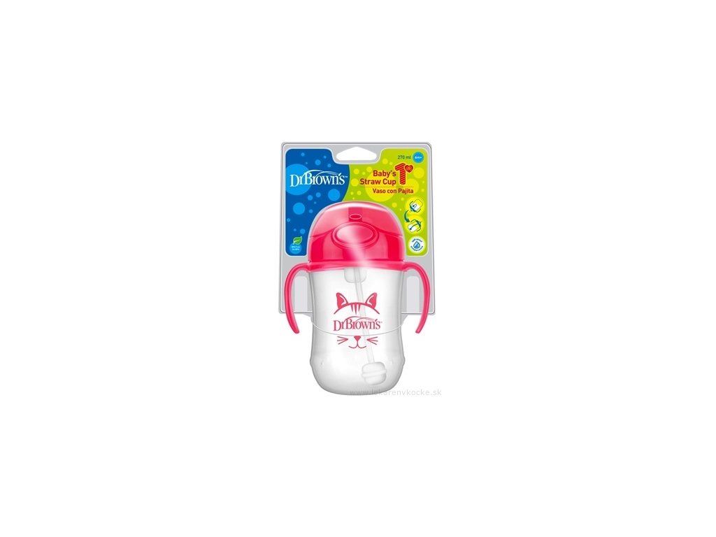 Dr. Brown’s Hrnek s brčkem 270 ml s držadly 6 M+ růžový