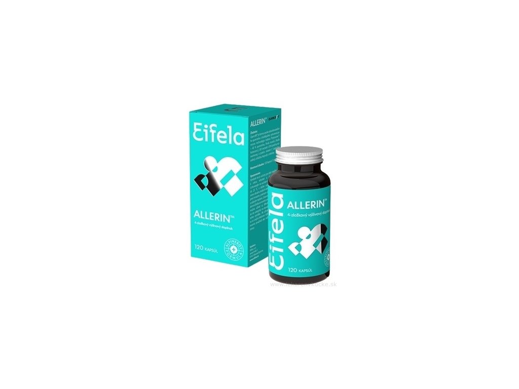 Eifela ALLERIN cps 1×120 ks je doplněk stravy vyvinutý na Slovensku, který obsahuje extrakt QUERCEFIT® – komplex quercetinu a fosfatidylcholinu, extrakt z perily křovité, aminokyselinu L-cystein a vitamin C. Kombinace účinných látek přináší podporu správného fungování imunitního systému, ochranu buněk před oxidačním stresem a přispívá ke snížení vyčerpání a únavy.