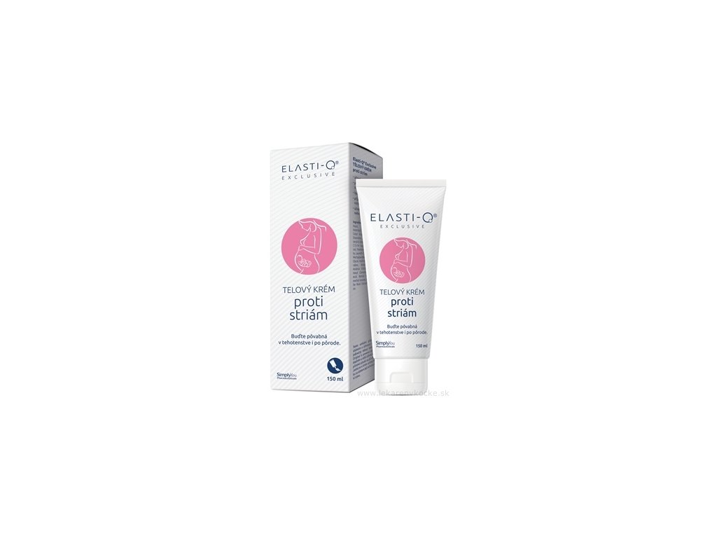 Elasti-Q Exclusive tělový krém s novým, účinnějším složením, určený pro ženy v období během a po těhotenství jako prevence proti striím. Tělový krém působí nejen v oblasti břicha, ale také stehen, boků a v dalších problematických partiích. Obsahuje účinné látky: Elastin, D-Panthenol, Kyselinu hyaluronovou, Vitamin E, Extrakt Pupečníku asijského (Centella Asiatica) Root). Přípravek: