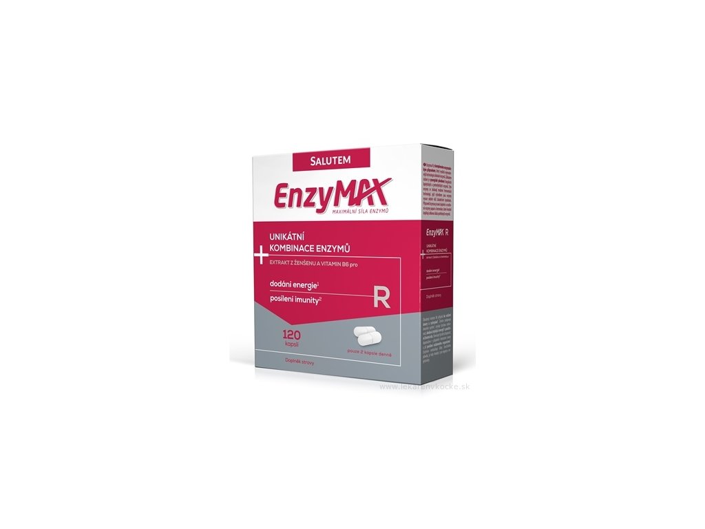 Enzymax R je komplexním enzymatickým přípravkem, který využívá nejmodernějších technologií získávání enzymů. Základem složení je synergické působení fungálních lipolytických a proteolytických enzymů. Tyto enzymy se získávají moderní fermentační technologií, jejímž výsledkem jsou enzymy vysoce odolné vůči žaludečním kyselinám. Přípravek Enzymax je navíc doplněn io rostlinné enzymy papain a bromelain, které vhodně doplňují celkovou škálu potřebných enzymů. Obsažený vitamín B6 přispívá ke snížení únavy a vyčerpání. Ženšen podporuje imunitní systém2, zvyšuje fyzickou výkonnost, dodává chybějící energii1 a pozitivní životní sílu. Stimuluje fyzické schopnosti, doporučené v případech intenzivní únavy a pro posílení oslabeného organismu2. Enzymax neobsahuje látky živočišného původu, je tedy vhodný i pro vegany a vegetariány.