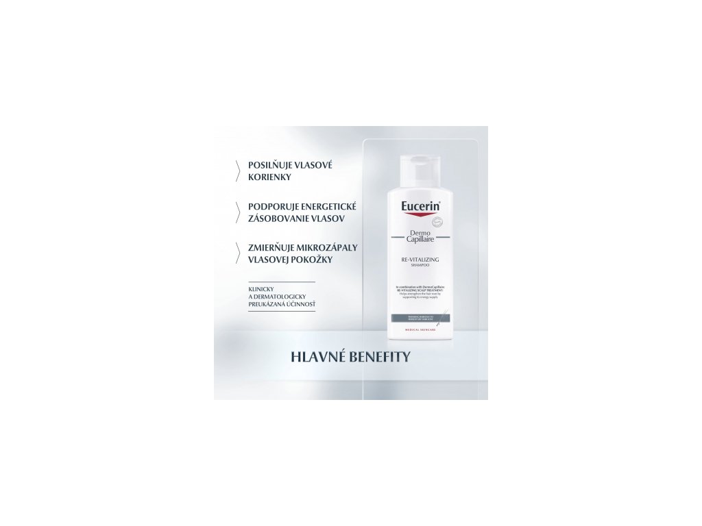 Při použití v kombinaci s Eucerin DermoCapillaire Tonikem proti vypadávání vlasů pomáhá posilovat vlasové kořínky tím, že podporuje jejich energetické zásobování.