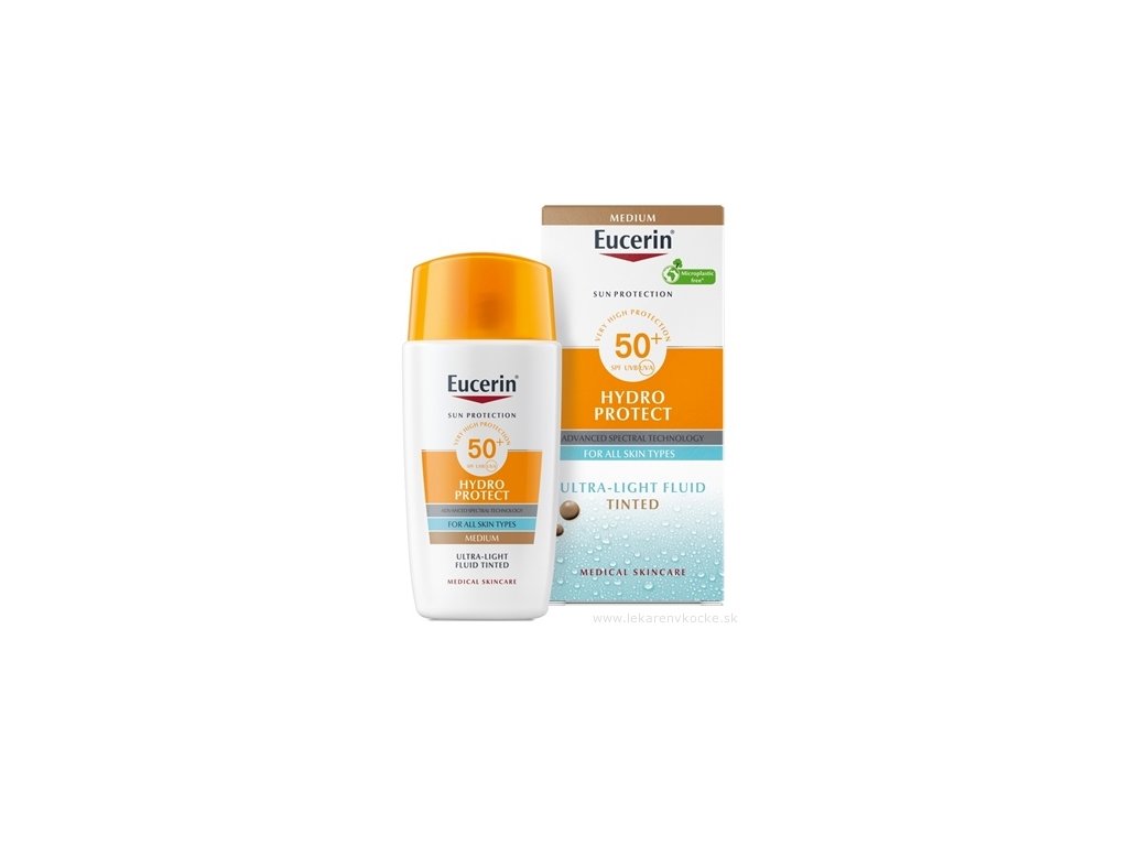 Eucerin SUN Ultra lehký FLUID SPF 50+ je inovativní sluneční ochranný přípravek na obličej, vhodný pro všechny typy pleti, včetně citlivé. Díky Hydro-tech-komplexu zajišťuje okamžitou hydrataci a osvěžující pocit na pleti. Je určen pro každodenní použití a díky lehké konzistenci se rychle vstřebává bez mastného a lepivého pocitu.
