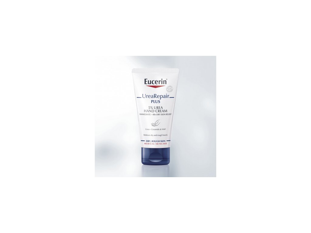 Eucerin UreaRepair PLUS Krém na ruce 5% Urea poskytuje suché, zhrublé pokožce na rukou potřebnou každodenní péči. Obsahuje unikátní kombinaci složek – ureu, ceramidy a další přirozené hydratační látky – které v pokožce vážou hydrataci a obnovují její přirozenou ochrannou bariéru, která zabraňuje další ztrátě hydratace. Klinické a dermatologické testy prokázaly, že jeho složení poskytuje okamžitou úlevu a intenzivní, dlouhotrvající hydrataci suché a zhrublé pokožce na rukou, a to i po opakovaném umytí. Posiluje přirozenou bariéru pokožky pro získání odolnosti proti vysušování až na 48 hodin.