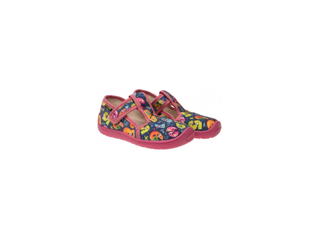 Fare Bare dětské pantofle na suchý zip růžové velikost 24 – barefoot prodyšná obuv 5102451