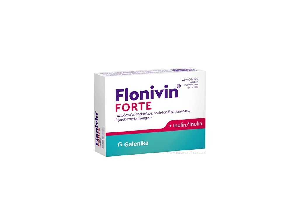 Flonivin & Forte Obsahuje 10 miliard prospěšných bakterií (Lactobacillus acidophilus, Lactobacillus rhamnosus, Bifidobacterium longum) a inulin.