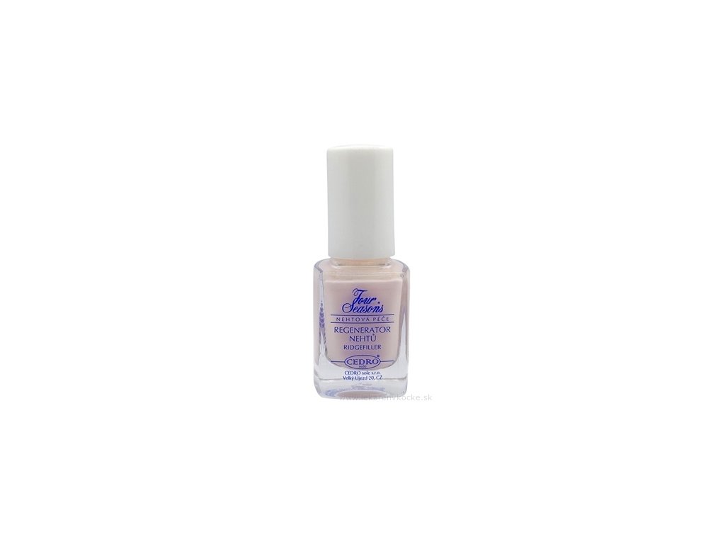 FOUR SEASONS Lak regenerátor nehtů je kosmetický přípravek určený k péči o poškozené nehty. Obsahuje složky, které vyživují, hydratují a chrání nehty před třepením, přičemž zároveň vyrovnávají drobné nerovnosti na povrchu nehtové ploténky. Lak vytváří jemný matný film s tělovým nádechem, díky čemuž působí přirozeně a esteticky. Obsahuje UV stabilizátor, který chrání lak před zežloutnutím a změnou barvy pod vlivem slunečního záření. Může se používat samostatně nebo jako podkladový lak, přičemž při pravidelném nanášení napomáhá udržovat pevné, zdravé a odolné nehty bez třepení.