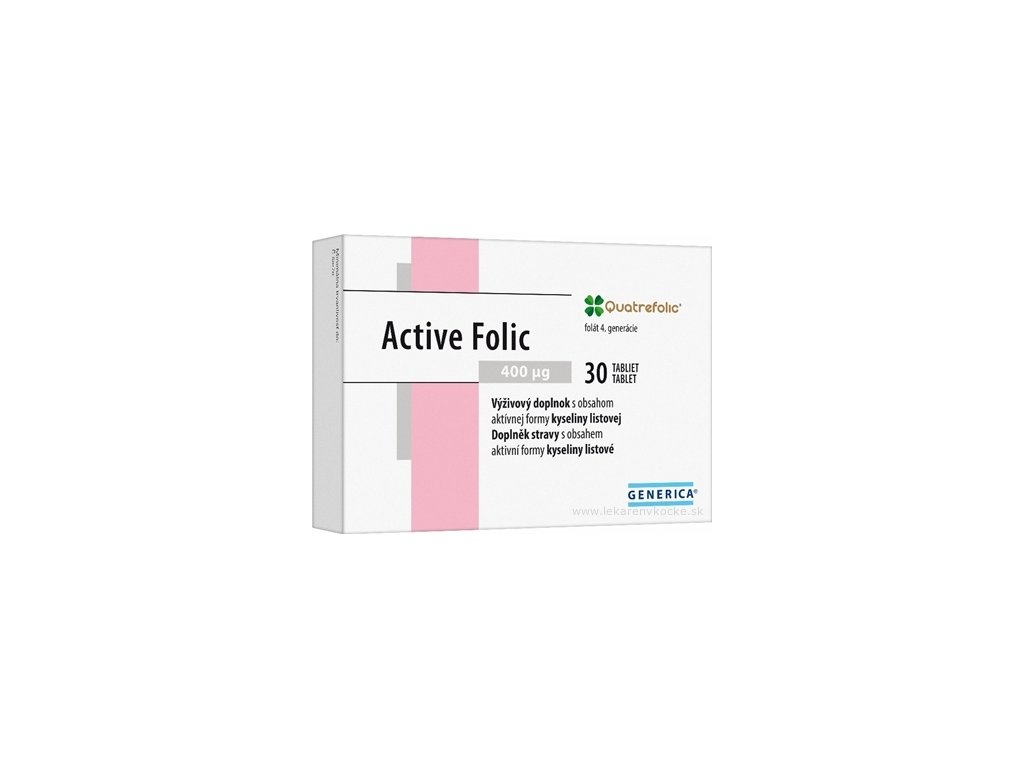 Doplněk stravy s obsahem aktivní formy kyseliny listové Quatrefolic® – folátu nejnovější 4. generace s vysokou biologickou dostupností.