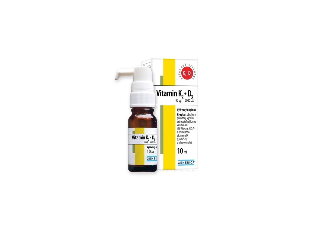 Kapky s obsahem přírodní, vysoce vstřebatelné formy vitamínu K2 (99% trans MK-7) a přírodního vitamínu D3 (Quali®-D) v olivovém oleji.