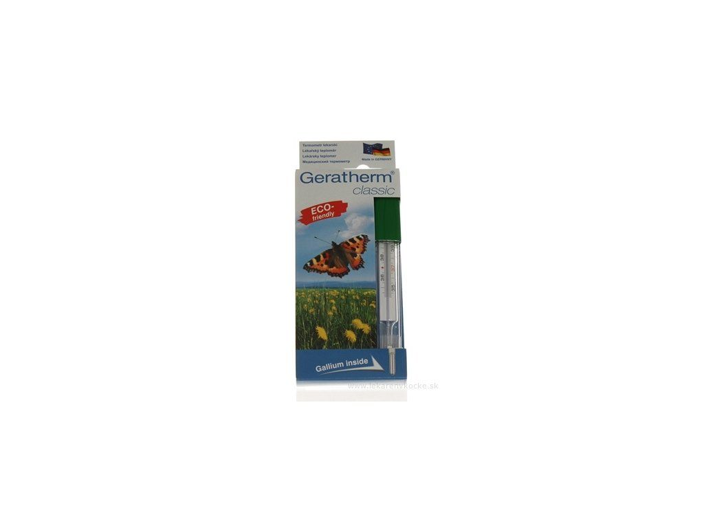 Lékařský teploměr bezrtuťový. Obsahuje Gallium – netoxickou a ekologicky nezávadnou měřící kapalinu.