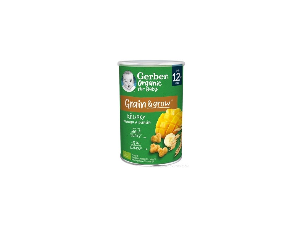 GERBER Organic křupky s mangem a banánem jsou křehké a nadýchané křupky pro děti vhodné od ukončeného 12. měsíce. Křupky jsou speciálně navrženy tak, aby odpovídaly potřebám vašich ratolestí. Skvěle padnou do ruček malých strávníků a vybízí i ty nejmenší k samostatnosti při jídle. Hravý tvar skvěle padnoucí do malých ruček vede k rozvoji jemné motoriky.