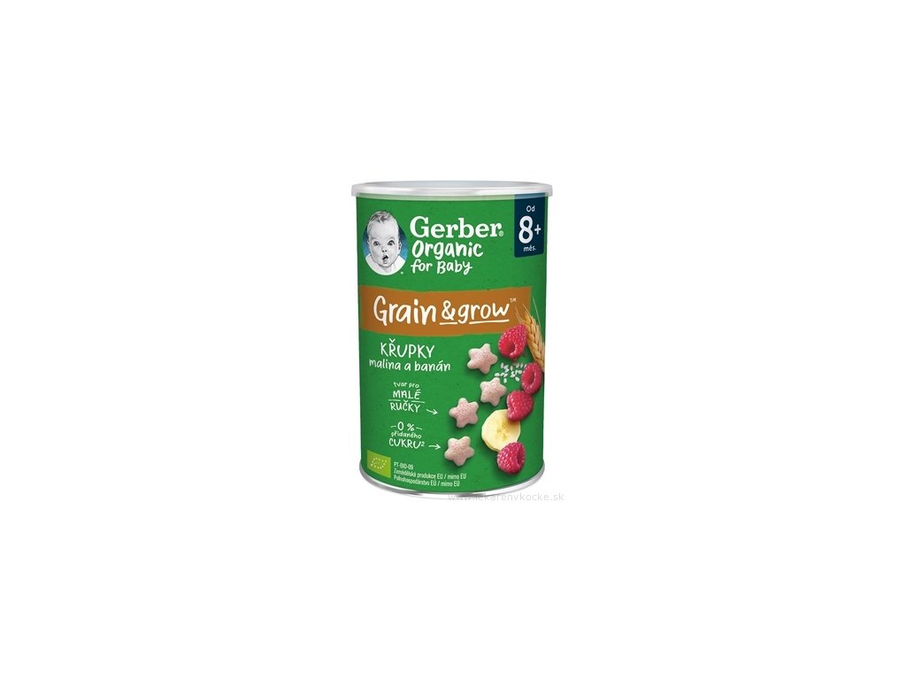 GERBER Organic křupky s malinami a banánem jsou křehké a nadýchané křupky pro děti vhodné od ukončeného 8. měsíce. Křupky jsou speciálně navrženy tak, aby odpovídaly potřebám vašich ratolestí. Skvěle padnou do ruček malých strávníků a vybízí i ty nejmenší k samostatnosti při jídle. Hravý tvar skvěle padnoucí do malých ruček vede k rozvoji jemné motoriky.
