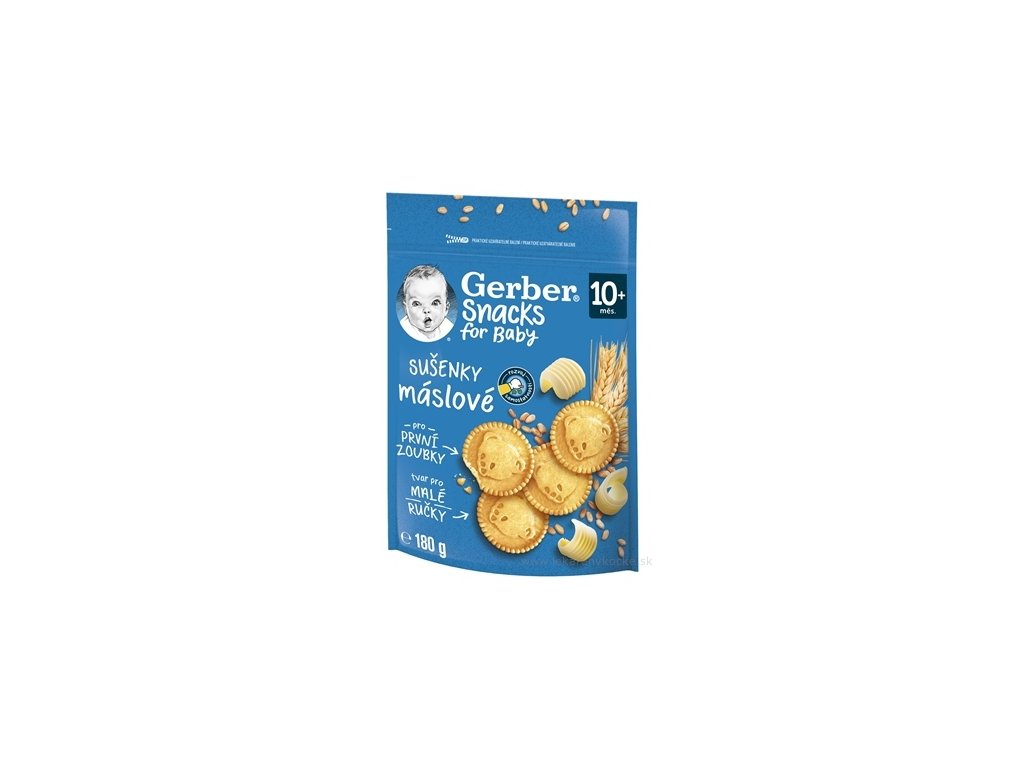 GERBER máslové sušenky jsou speciálně vyvinuty s ohledem na potřeby vašich ratolestí, aby padly do jejich ručiček a měly lahodnou chuť. Sušenky jsou baleny v znovu-uzavíratelném obalu, takže budou praktickou volbou pro každodenní využití vhodné nejen na cesty, ale i kdykoli během dne jako chutná svačinka.