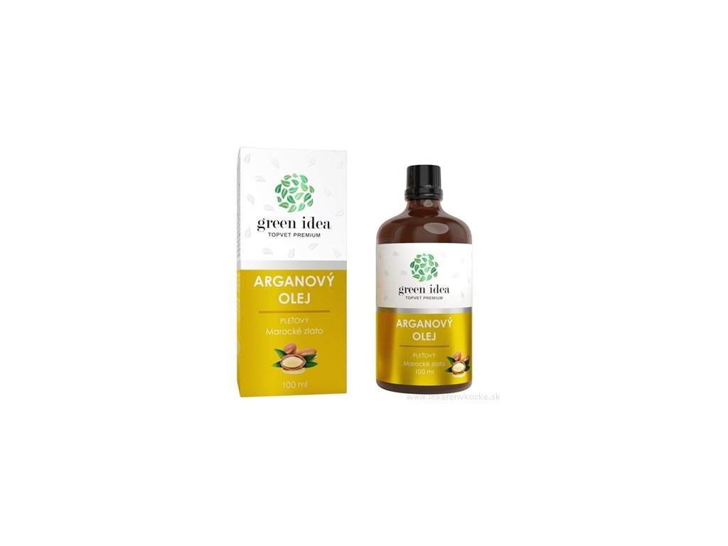 Green Idea Arganový olej pleťový je přírodní kosmetický olej, známý také jako „marocké zlato“. Je bohatý na nenasycené mastné kyseliny, antioxidanty, vitamíny a fytosteroly. Vhodný je pro každý typ pleti, včetně citlivé, suché či ekzematické pokožky. Používá se jako náhrada denních i nočních krémů, pomáhá redukovat výskyt vrásek, hydratuje a zachovává mladistvý vzhled pleti. Doporučuje se také ke zlepšení kvality vlasů – zejména suchých, poškozených a roztřepených.