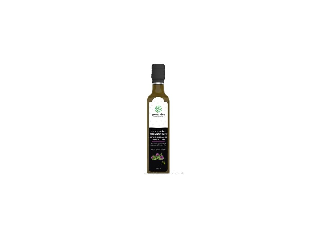 Green Idea Ostropestřec mariánský je jednodruhový rostlinný panenský olej lisovaný za studena, bohatý na aktivní látky, zejména silymarin. Přispívá k podpoře normální činnosti jaterní tkáně a trávení, chrání buňky a tkáně před oxidativním stresem, pomáhá udržovat normální činnost srdce a přispívá k normální hladině krevního cukru. Podporuje detoxikaci a přirozenou obranyschopnost organismu. Olej má jemně nahořklou chuť a je vhodný k dochucení studených pokrmů.