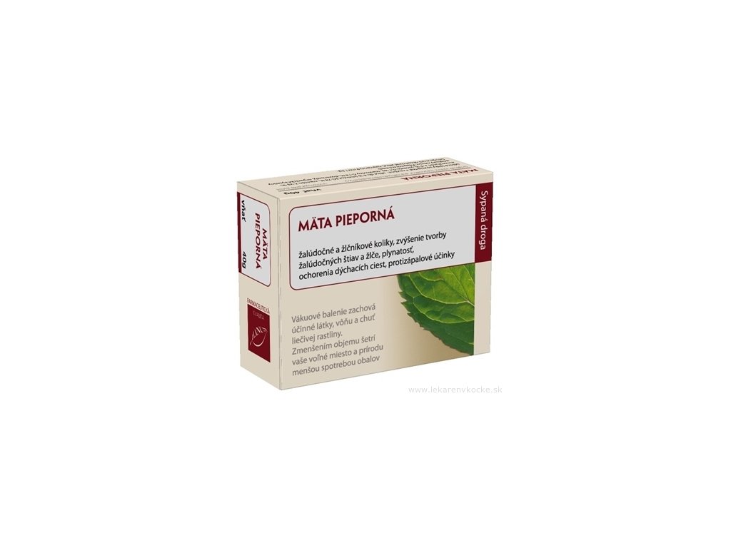 Sypaná droga Máta peprná - nať (lat. Mentha piperita), vakuově balená. Vakuové balení zachová účinné látky, vůni a chuť léčivé rostliny.