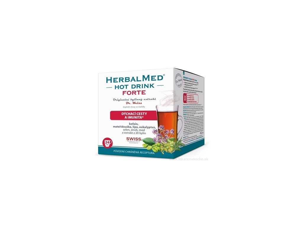 HERBALMED Hot drink FORTE Dr. Weiss - doplněk stravy se sladidly, originální bylinný extrakt, obsahuje kofein, mateřídoušku, lípu, eukalyptus, selen, zinek, med a extrakt z 20 bylin.