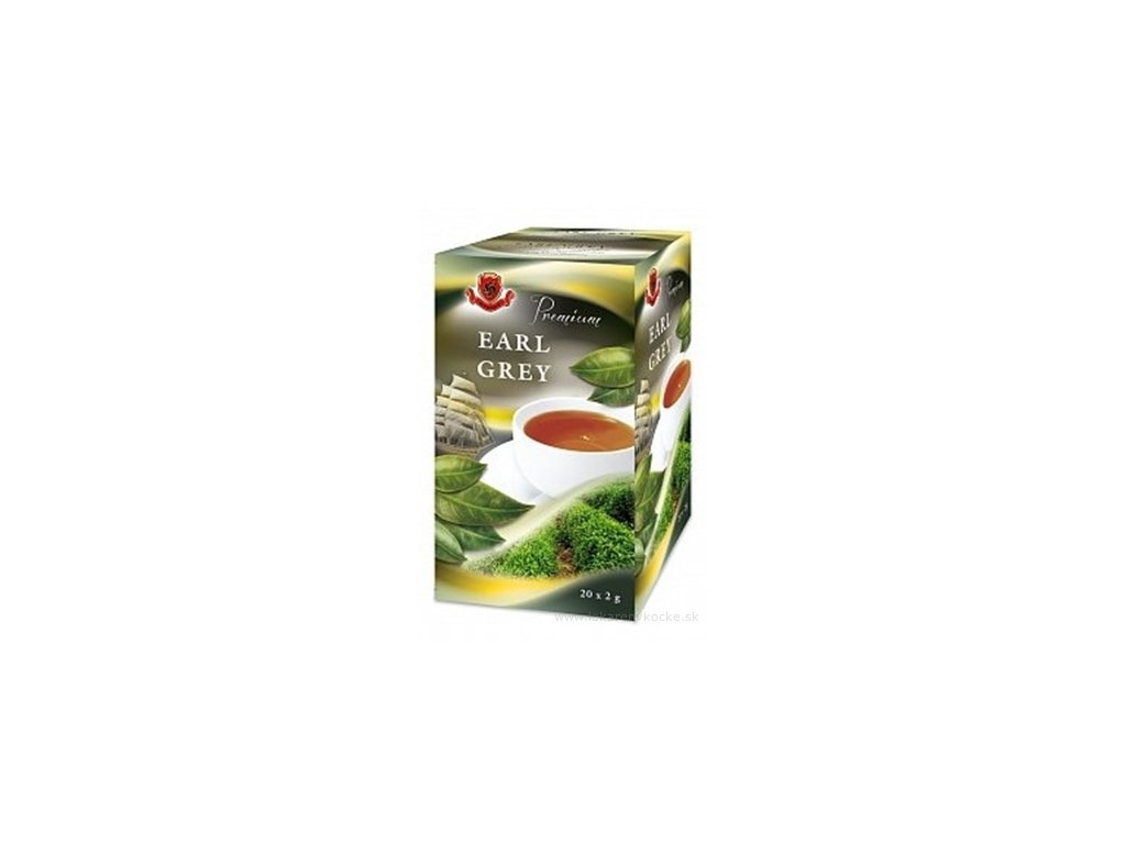Černý čaj aromatizovaný (s aroma bergamot), v nálevových sáčcích s přebalem po 2 g.
