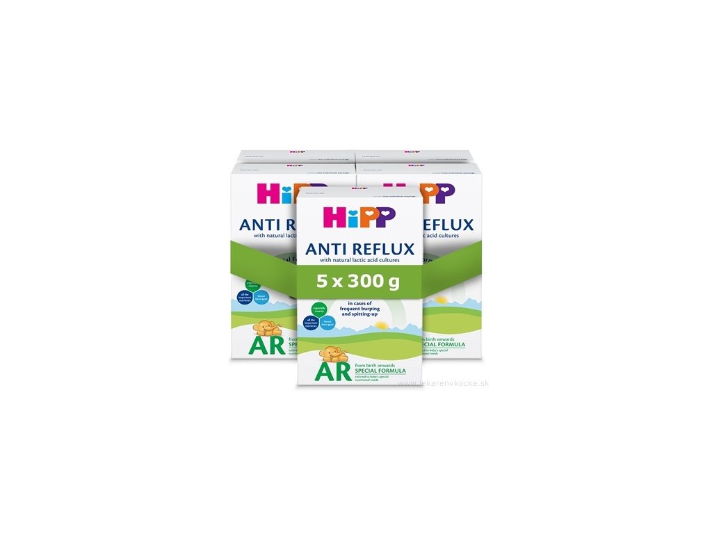 Speciální kojenecká výživa HiPP Anti-Reflux je nutričně kompletní výživa určená k dietnímu režimu při výživě kojenců, kteří říkají. Je vhodná jako jediný zdroj výživy pro kojence od narození, stejně jako od ukončeného 6. měsíce věku v rámci smíšené stravy, pokud nemohou být kojeny. Výživa HiPP AR je potravina pro zvláštní lékařské účely v prášku. Podávejte pouze po konzultaci s lékařem. Speciální kojenecká výživa HiPP Anti-Reflux obsahuje: