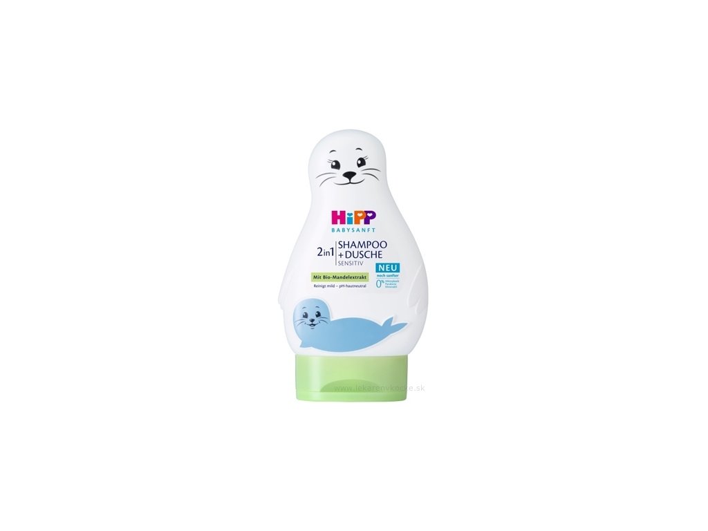 HiPP Babysanft sprchový gel a šampon „2 v 1“ na vlasy i tělo s mrožem myje citlivou dětskou pokožku a vlásky obzvláště šetrně. Obsahuje cenné přírodní výtažky z BIO mandlí, udržuje přirozené pH pokožky, neštípe v očích a usnadňuje rozčesávání vlásků. Pro každodenní hygienu, která děti baví. V praktické láhvi s uzávěrem dolů.