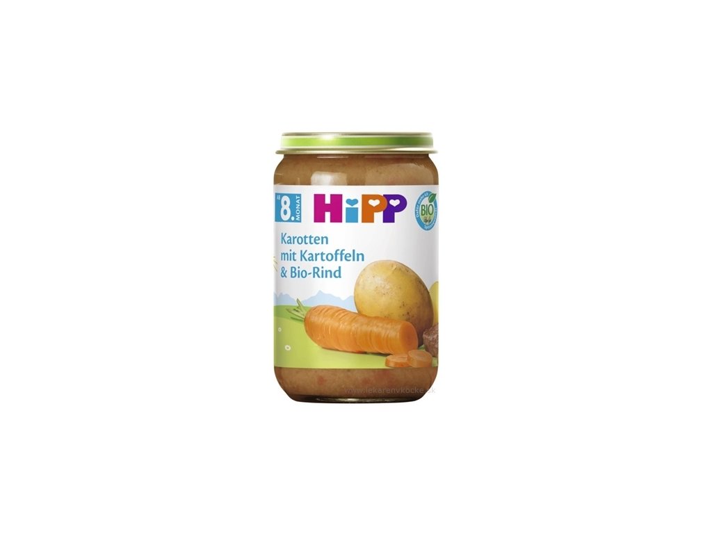 HiPP BIO Brambory, zelenina a hovězí maso je sterilizovaný zeleninově-masový příkrm určený pro děti od ukončeného 8. měsíce. Vyznačuje se výbornou BIO kvalitou a jemnou konzistencí s drobnými kousky, které jsou ideální pro nácvik kousání. Díky pečlivě vybraným surovinám a přidanému řepkovému oleji, který je zdrojem omega-3 mastných kyselin, podporuje zdravý vývoj mozku a nervové soustavy dítěte.