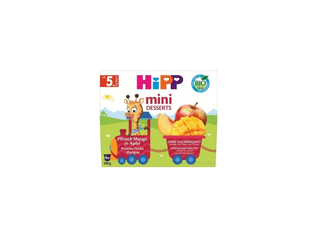 Složení: 100% ovoce (jablka 88%, broskve 9%, mango)*. (*Z ekologického zemědělství.)