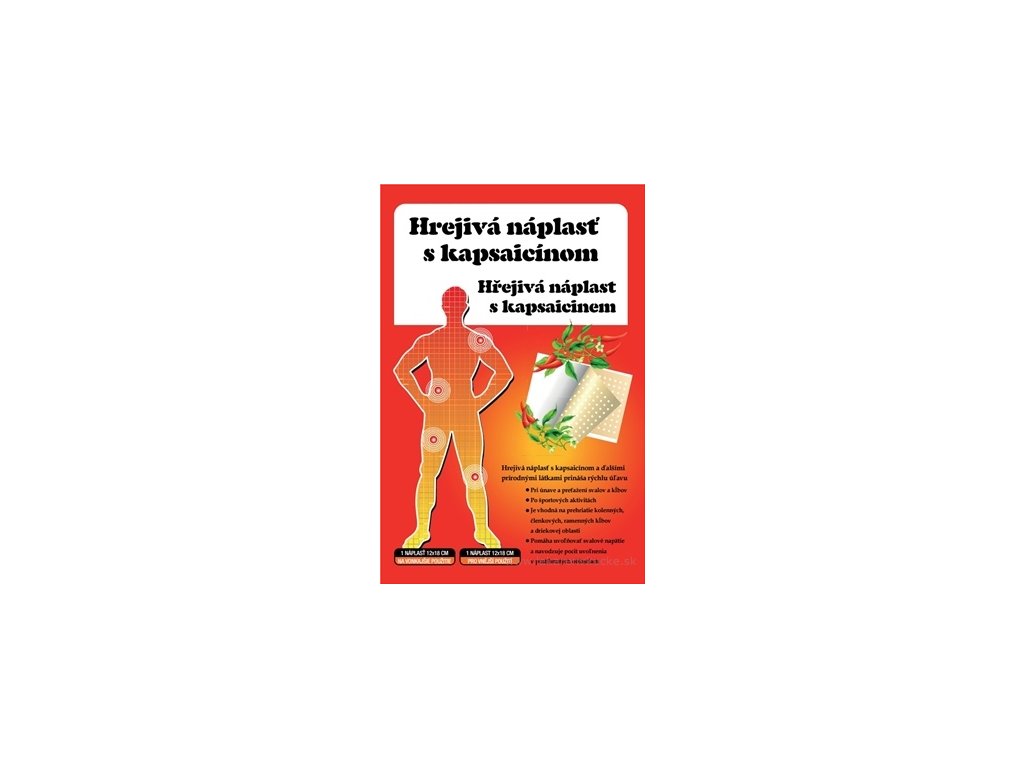 Hřejivá náplast s kapsaicinem a dalšími přírodními látkami (mentol, kafr, kadidlovník). Vhodná