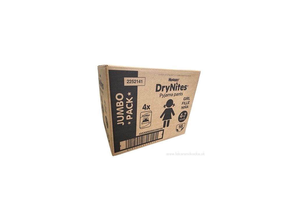 HUGGIES DryNites M pro dívky (4-7 let) JUMBO plenkové kalhotky 17-30 kg, 64ks