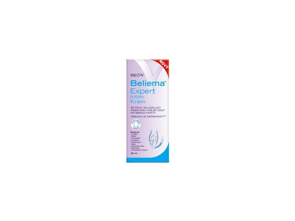 Šetrný zklidňující krém na vnější části intimních partií. Obsahuje Dermosoft®.